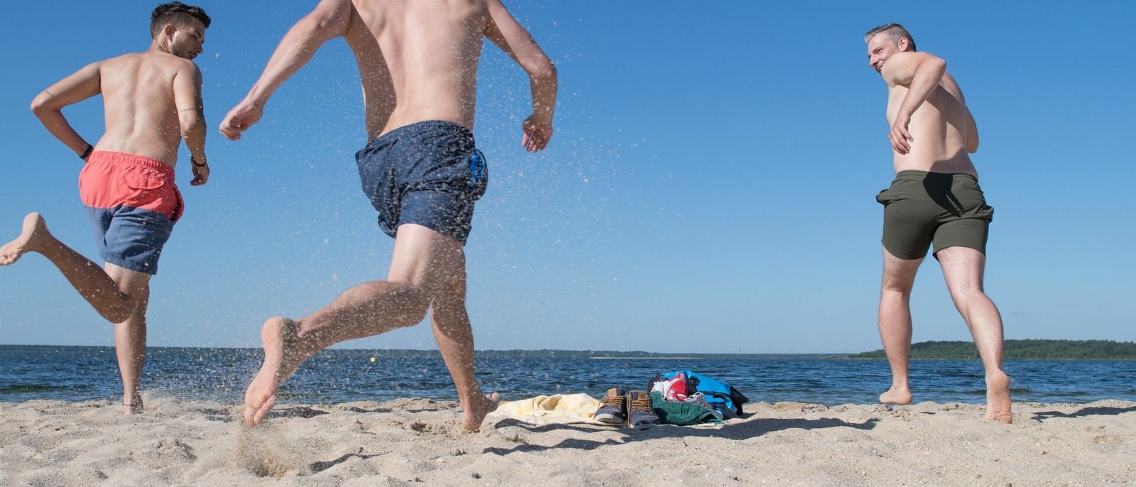 Slunce pálí. Jezero Bärwalder See je skvělým místem, kde si udělat pauzu: jsou zde prostorné písečné pláže a průzračná voda. Když trojice dorazí ke břehu v Boxbergu, znamená to pro ně tedy jediné – svléknout se a honem do vody. U jezera Bärwalder See se toho však kromě koupání dá podniknout mnohem více. Kdo má chuť, vyrazí si na brusle po stezce kolem jezera, ukojí svou vášeň pro kulturu v „Divadle v uchu“ pod širým nebem, nechá se svézt plachetnicí anebo si půjčí motorový člun. Z původně plánované krátké přestávky na vydechnutí se tak rázem stanou dvě hodiny u jezera. Tu se ozve Clemens podřimující v plážovém koši: „Tady se mi to líbí!“