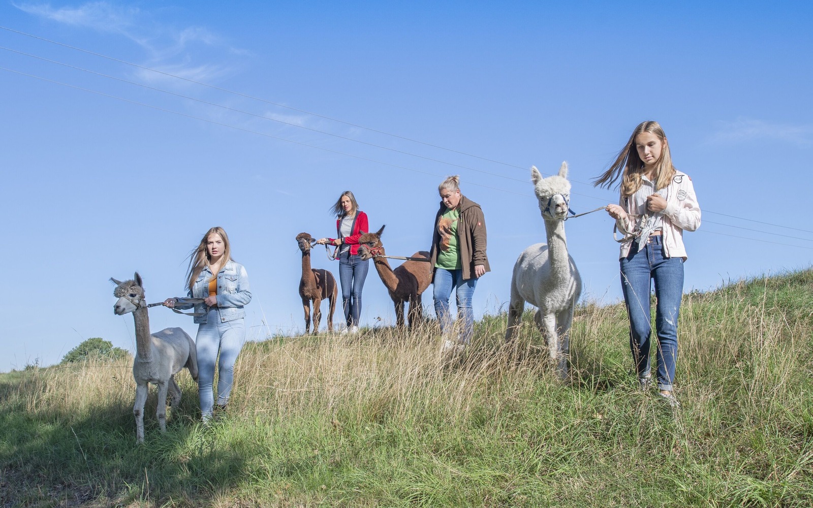 S oblečením a obuví vhodnou podle počasí je na přání možná túra se dvěma resp. čtyřmi alpakami na jednu nebo dvě hodiny. Mezitím si také můžete udělat piknik. Během výšlapu se dozvíte mnohé o alpakách a můžete zvířata i krmit. Samozřejmě získáte také informace o Lužických jezerech, protože se budete procházet s alpakami uprostřed nich. Všichni hosté si mohou alpaky vodit a hladit, protože se jedná o zvířata používaná pro terapii s pomocí zvířat. Proto jsou zvyklí jednat s lidmi - ať už velkými, nebo malými. Jejich vlna je navíc vhodná pro alergiky, takže se lidé s alergií na zvířecí srst nemusí ničeho obávat.