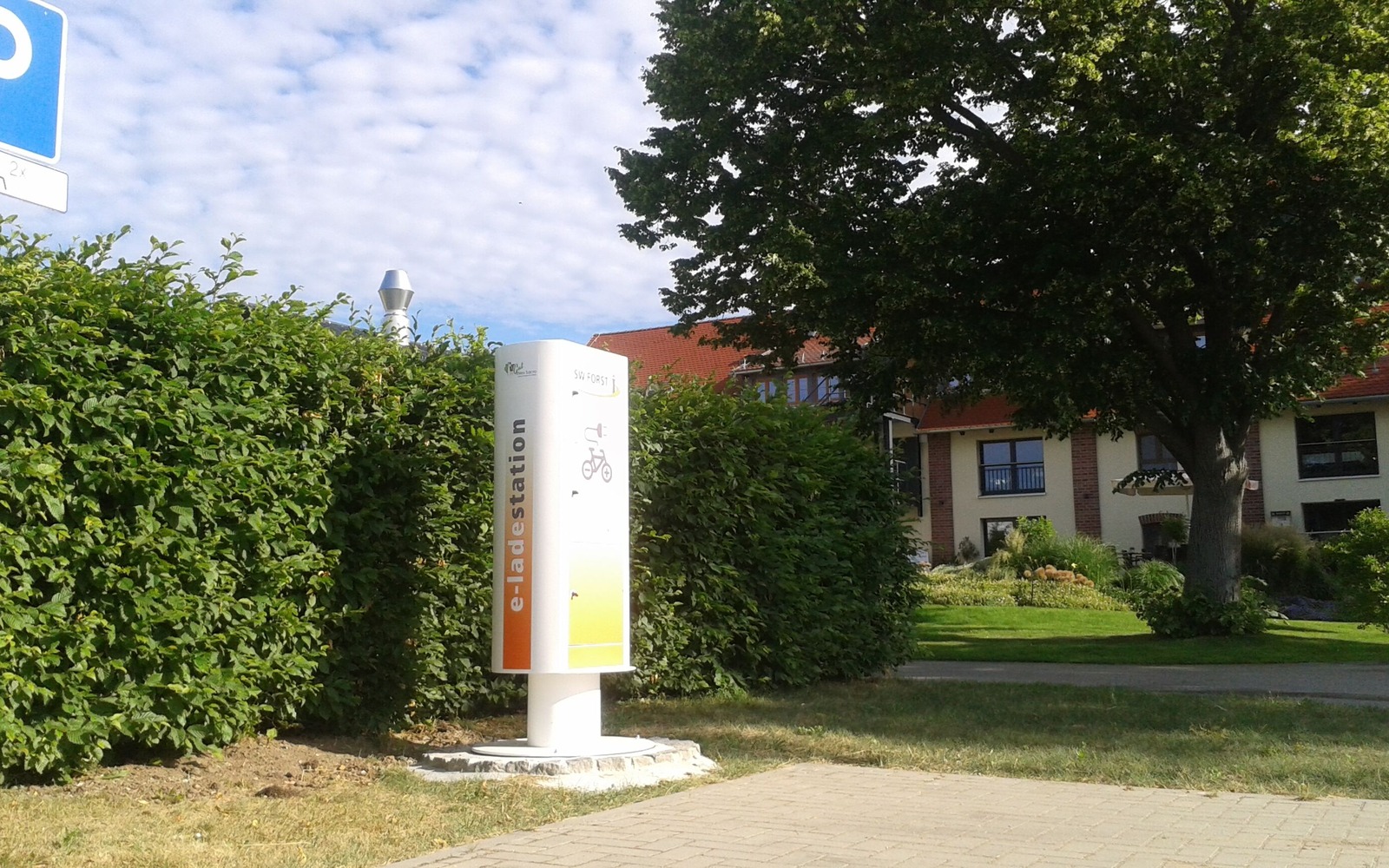 Nabíjecí stanice pro elektrokola na parkovišti u sídliště Neu Sacro, Foto: Tourismusverband Niederlausitz e.V.