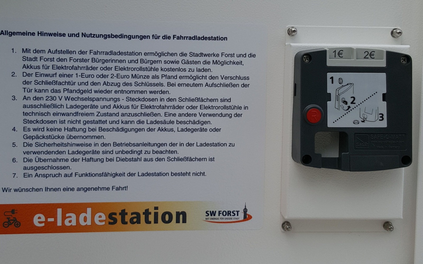 Nabíjecí stanice pro elektrokola se nachází na parkovišti u sídliště Neu Sacro poblíž cyklostezky Odra-Nisa ve Forstu (Lužice). Elektrocyklisté si zde mohou bezplatně nabít baterii svého elektrokola. Na nabíjecí stanici jsou k dispozici 3 skříňky, každá se 2 zásuvkami pro baterie. Do skříněk stačí vložit minci v hodnotě 1,00 nebo 2,00 euro jako zálohu na uzamčení dveří. Tuto minci dostanete zpět po otevření dveří.