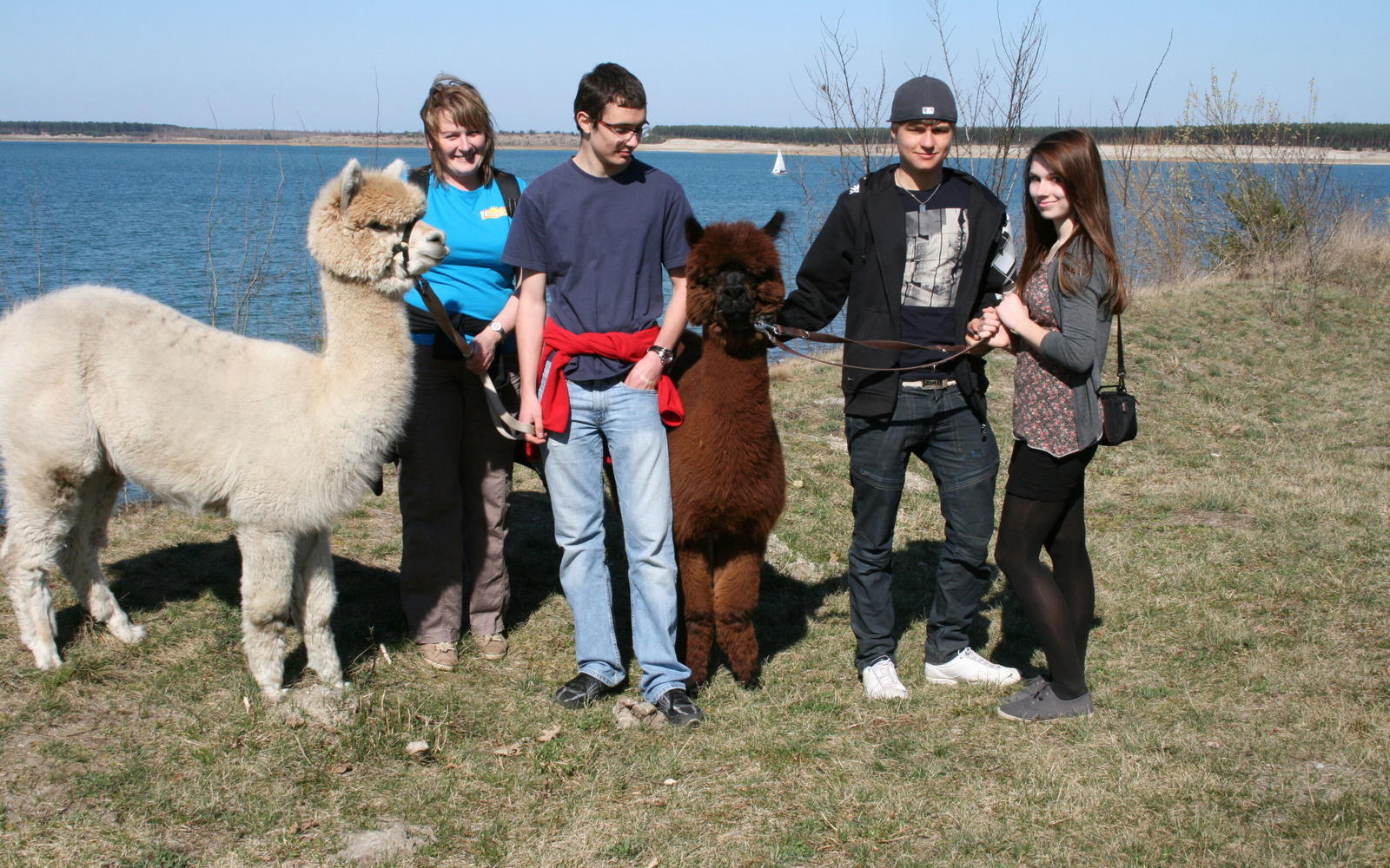 Ein besonderes Familienangebot macht Gästeführerin Cornelia Schnippa in Tätzschwitz, einem Dorf am neu entstandenen Geierswalder See. Auf ihrem Erlebnisbauernhof arbeitet die Therapeutin mit Alpakas. Die ursprünglich aus den Anden stammenden Tiere sind sehr einfühlsam und schnell spüren die Tiere die Herzlichkeit, mit denen Erwachsene und Kinder ihnen begegnen. Bei LAUSITZleben soll jeder Gast spüren, wie einzigartig und wertvoll er ist. Daher ermöglicht Frau Schnippa jedem Besucher und jeder Gruppe ein individuelles Programm mit Wanderungen, Führungen und Bauernhofbesichtigungen. Bitte vereinbaren Sie kurz einen Termin für eine Wanderung, aber auch für einen Bauernhof-Besuch. LAUSITZleben ist zertifiziert als "Familienfreundlich im Lausitzer Seenland".