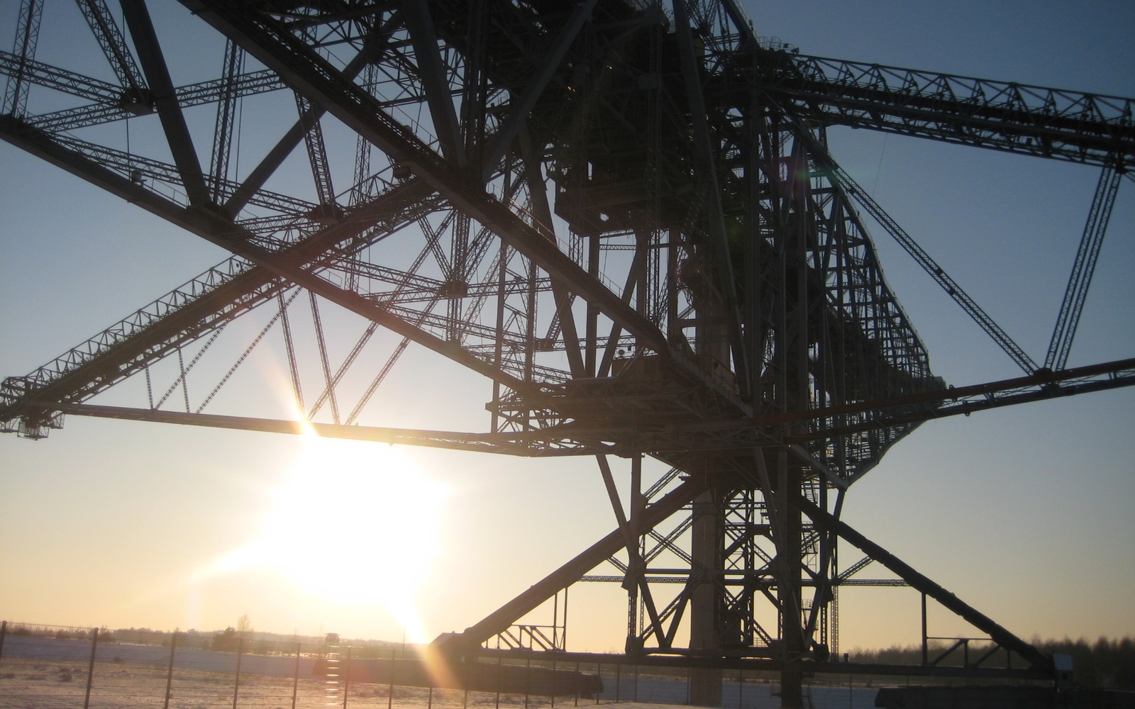 Die Förderbrücke ist vom Eingang ca. 20 m entfernt. Zum Besteigen der Förderbrücke ist eine gewisse Schwindelfreiheit Voraussetzung.