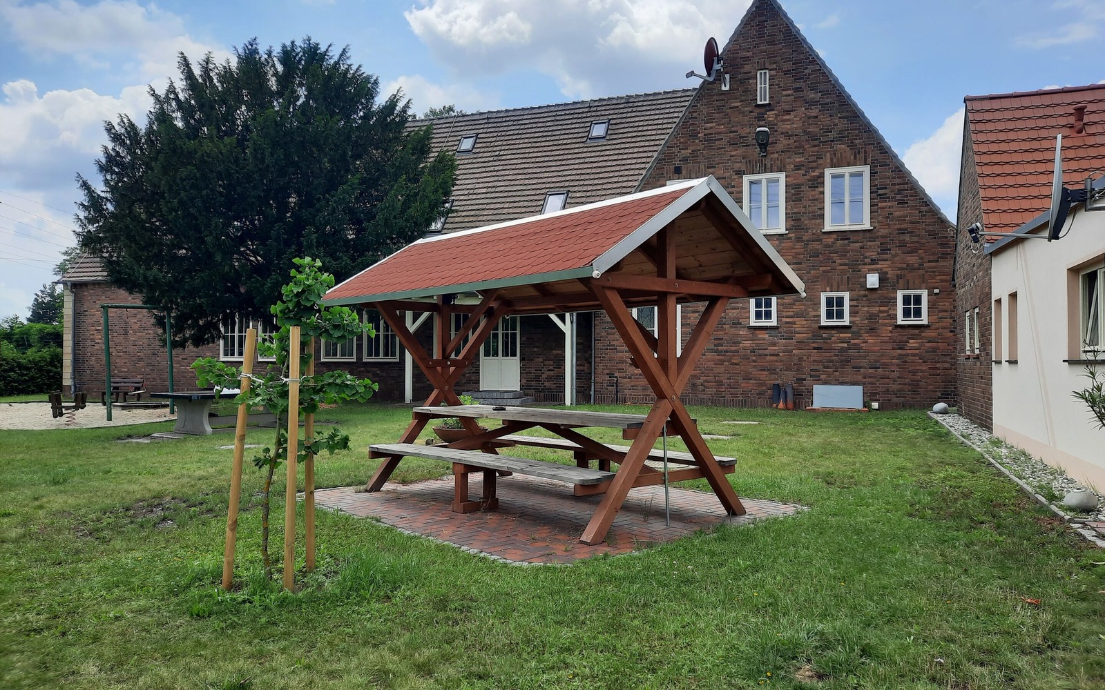Im großzügigen Aussenbereich gibt es einen Spielplatz, Fahrradunterstell- und Sitzmöglichkeiten zum Erholen und Entspannen. Desweiteren steht eine Gemeinschaftsküche, ein Aufenthaltsraum sowie eine barrierefreie Dusche und WC zur Verfügung. Die Benutzung der Sauna im Kellergeschoß kann vor Ort gegen Aufpreis gebucht werden.
