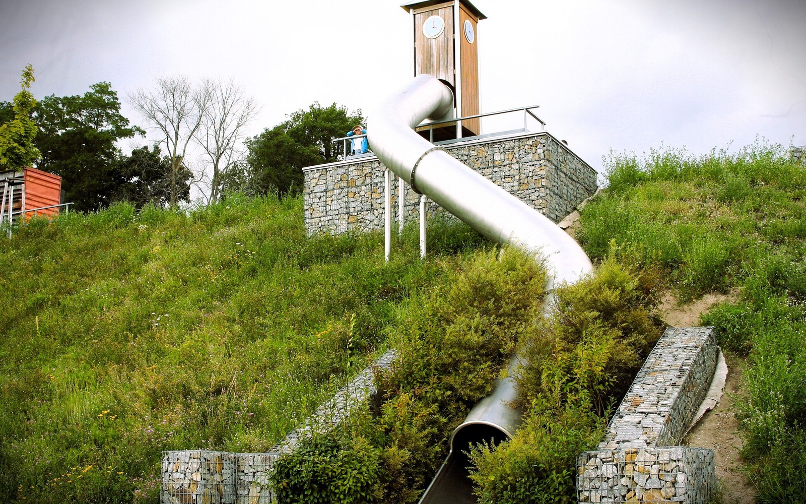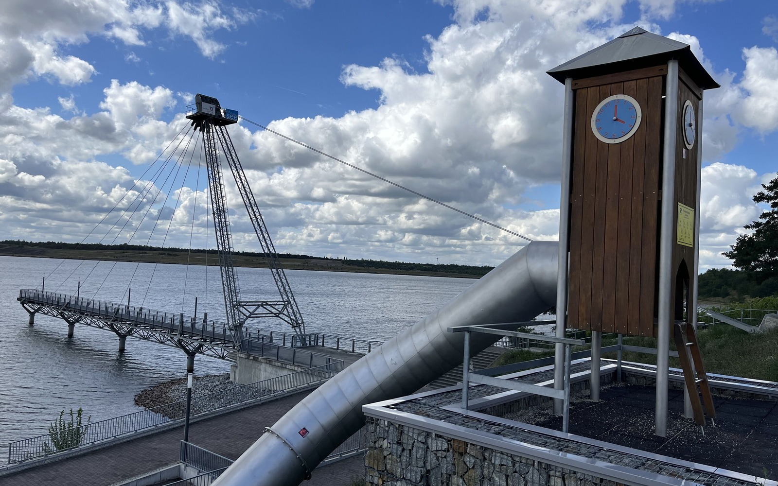 Rutsche mit Blick zur Seebrücke, Foto: Celine Klose, Lizenz: Tourismusverband Lausitzer Seenland e.V.