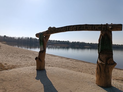 Blick zum Badestrandstrand Grünewalder Lauch, Foto: Sarah Brunne, Lizenz: Tourismusverband Lausitzer Seenland (Bild: 1/2)
