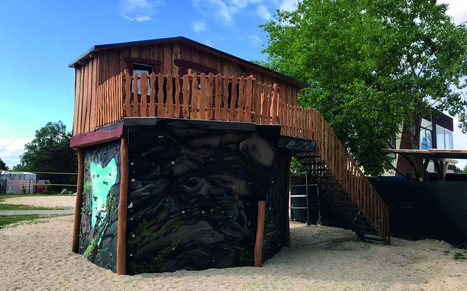 Baumhaus mit Boulderwand - Eins von unzähligen Übernachtungsmöglichgkeiten direkt bei uns am Strand, Foto: Wake and Beach Halbendorf, Lizenz: Wake and Beach Halbendorf