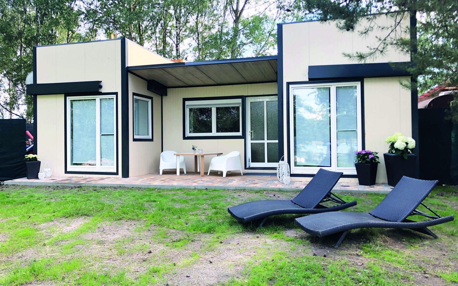 Blick auf unsere Tiny Häuser - Eins von unzähligen Übernachtungsmöglichgkeiten direkt bei uns am Strand, Foto: Wake and Beach Halbendorf, Lizenz: Wake and Beach Halbendorf