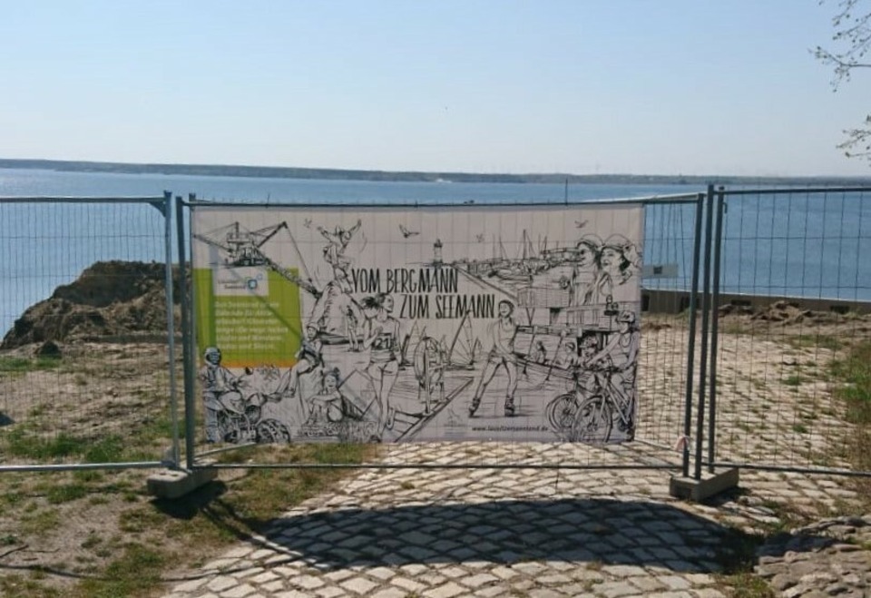 Mit Bannern an den Baustellen in der Region werben wir gut sichtbar für das Lausitzer Seenland und machen auf den Landschaftswandel aufmerksam. Die Banner gibt es in drei Motivvarianten zu den Themen Wasser, Bewegung und Genießen.