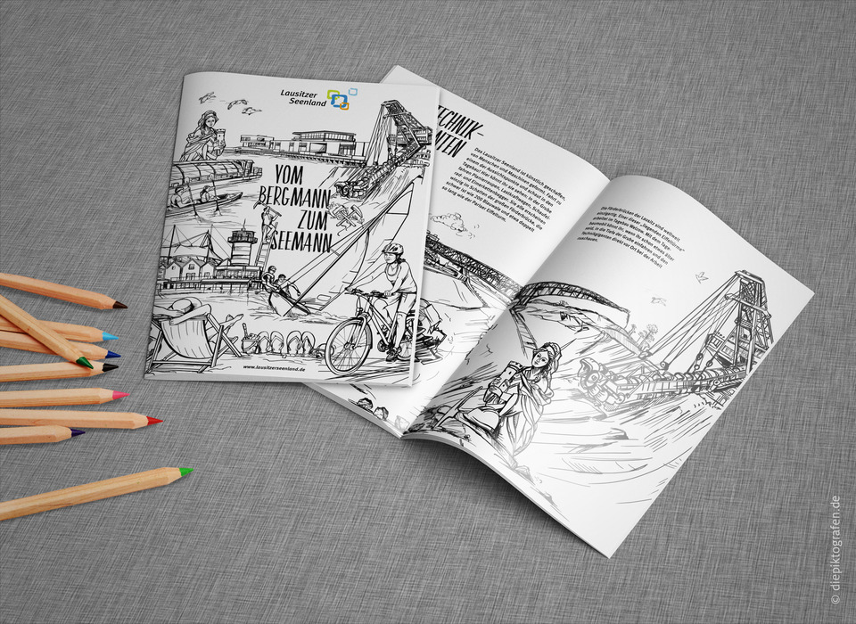 Das 24-seitige Malbuch vermittelt mit Bildergeschichten zum Ausmalen und begleitenden Texten den Wandel der Region. Das Malbuch richtet sich an Kinder im Grundschulalter. Die Hefte werden in den Grundschulen der Region verteilt und sollen dazu beitragen die Geschichte des Lausitzer Seenlandes spielerisch kennen zu lernen.
