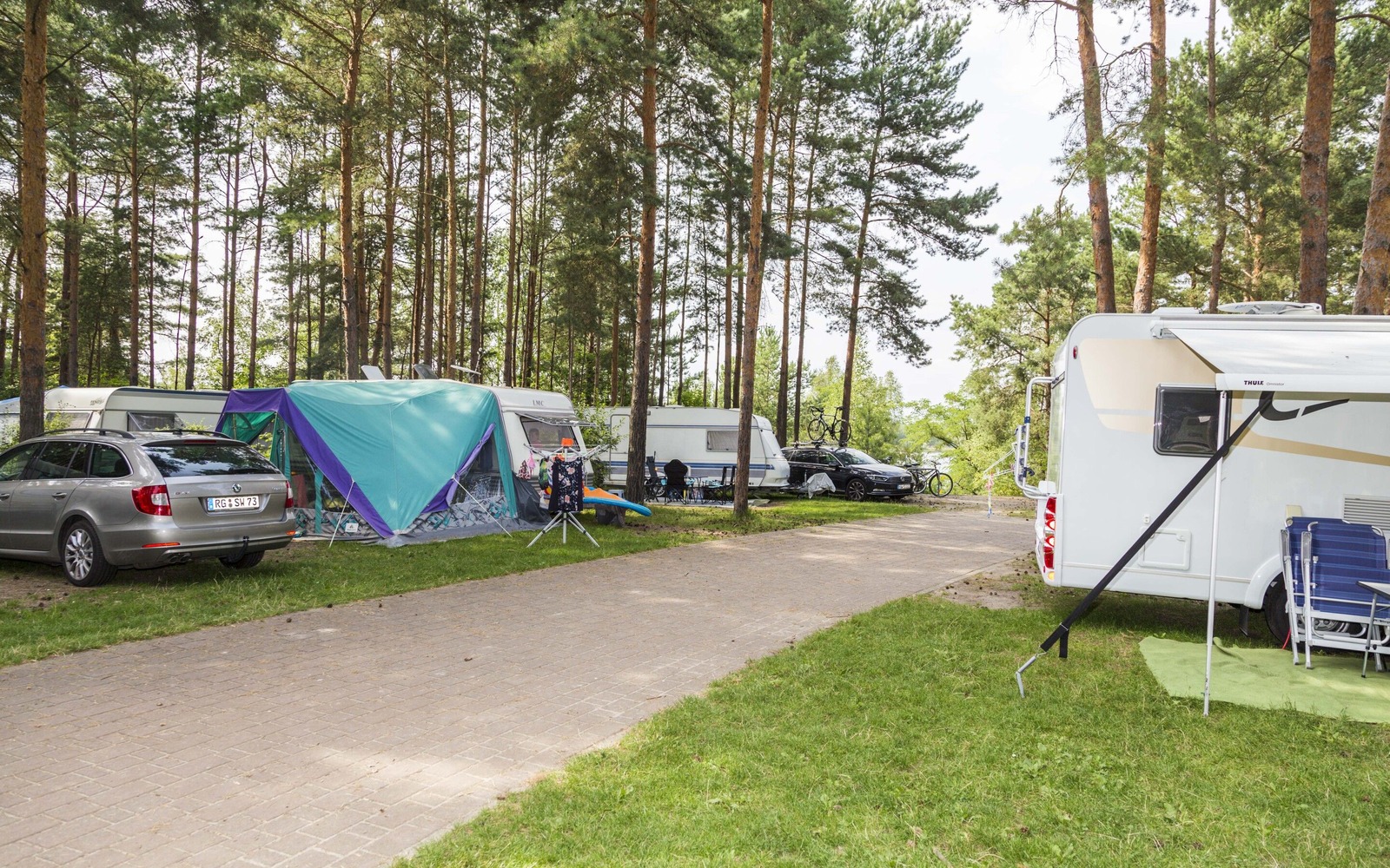 Der familienfreundliche 5-Sterne-Campingplatz befindet sich inmitten eines Kiefernwaldes mit eigenem flach abfallendem Sandstrand. Die parzellierten Standplätze unterteilen sich in zwei Kategorien. Die Familienkomfortplätze auf Waldboden verfügen über einen direkten Strom-, Wasser-, Abwasser- und TV-Anschluss und befinden sich in Wassernähe. Die schattigen Waldplätze bieten ebenfalls einen Stromanschluss sowie eine Wasserzapfstelle. 5 Wohnmobilstellplätze befinden sich außerhalb der Anlage. Kinder bis 15 Jahre campen in familiärer Begleitung kostenfrei. Den Gästen stehen 6 Sanitärgebäude mit Kinderwaschland und Babybad sowie Koch- und Waschgelegenheiten zur Verfügung.