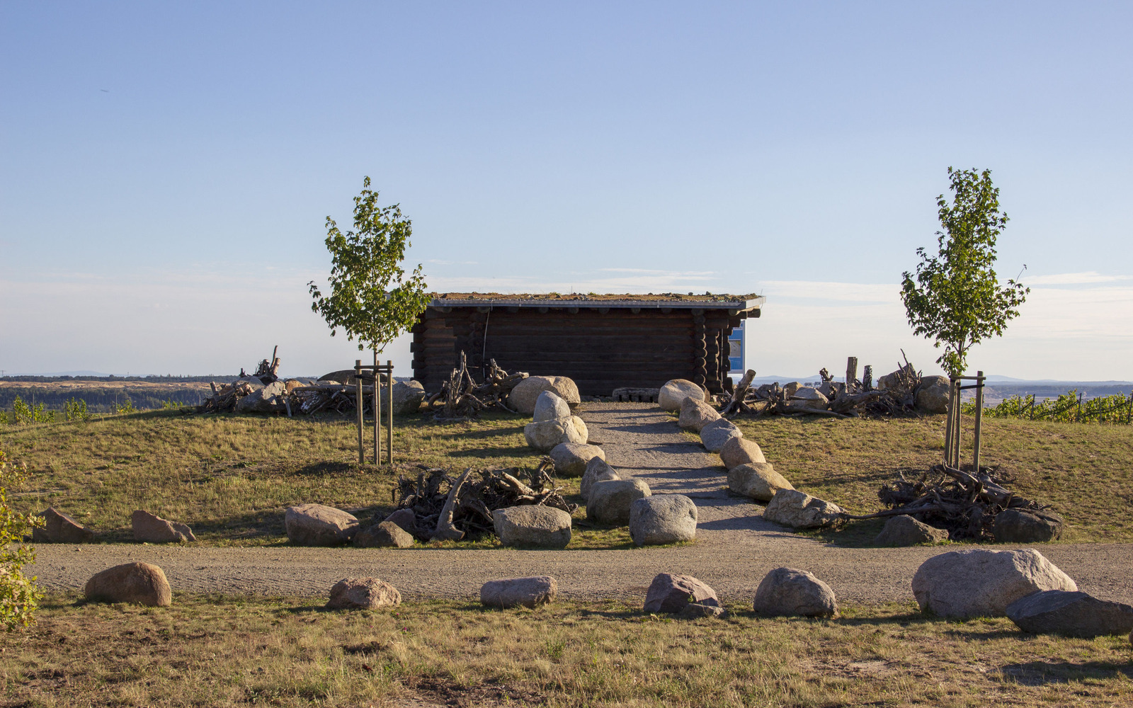 The Wolkenberg viewpoint is located at the edge of the Welzow-Süd surface mine on recultivated land. There is a refuge on the highest point of the Wolkenberg. From here there is a good view of the post-mining landscape and the vineyard, with grapes growing on the southern slope of the Wolkenberg. 26,000 vines have been planted where once the village of Wolkenberg stood. At the foot of the Wolkenberg stands a memorial for the former village, which had to make way for surface mining in 1991.
