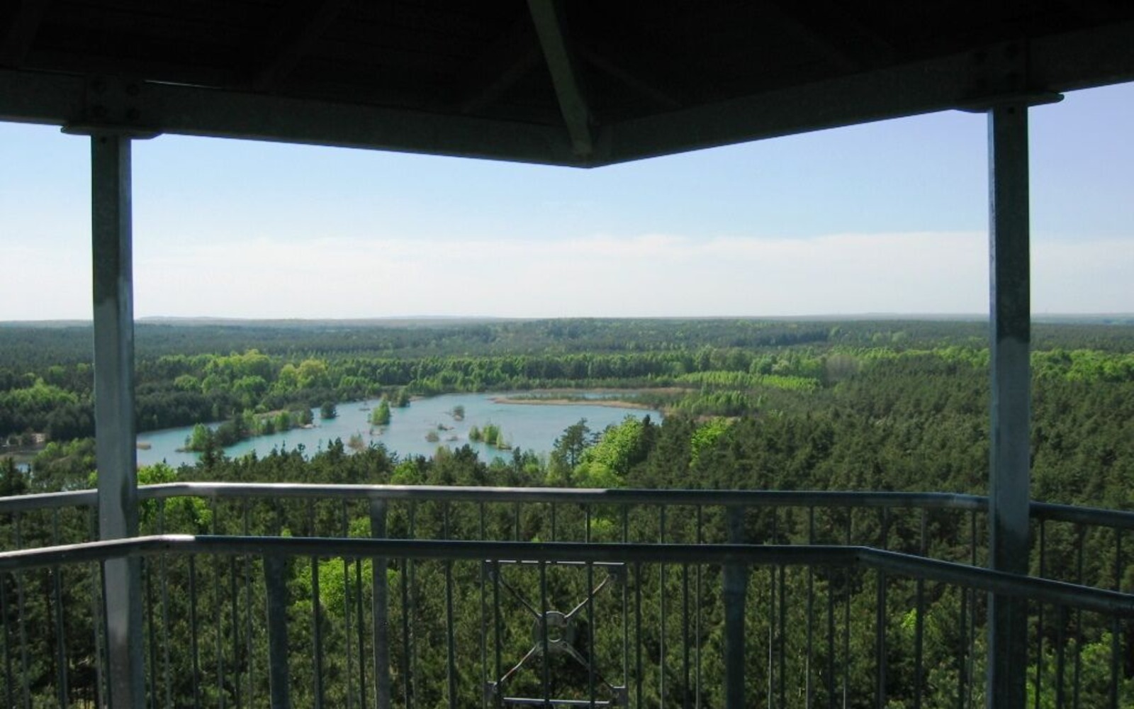 The cycle tour to Buck'sche Schweiz is a particular pleasure for nature lovers. On the way in the three-hectare area natural monument south of Lake Senftenberg, you cycle through seemingly endless forests that attract many hikers and runners and are said to be rich in mushrooms. Before that, the route leads past the fairytale castle in Hohenbocka, which was built more than 100 years ago. A little later you reach the 30-metre-high observation tower on the Prossenberg, which offers a magnificent panoramic view. At the foot of the mountain are the so-called rocks of glass. The bizarre two to three metre high sandstone rocks made of hardened glass sand offer an ideal picnic spot. They are reminiscent of the rock formations in Saxon Switzerland. The fine quartz sand has been mined in the area since the 19th century and used to make colourless glass. The tour then continues to Lake Senftenberg. Here, the 31-metre-high Leaning Tower guarantees the best views of the crystal-clear water, the nature reserve island in the lake and the dense pine forests. With an angle of inclination of 10 degrees, the tower is more leaning than its counterpart in Pisa.