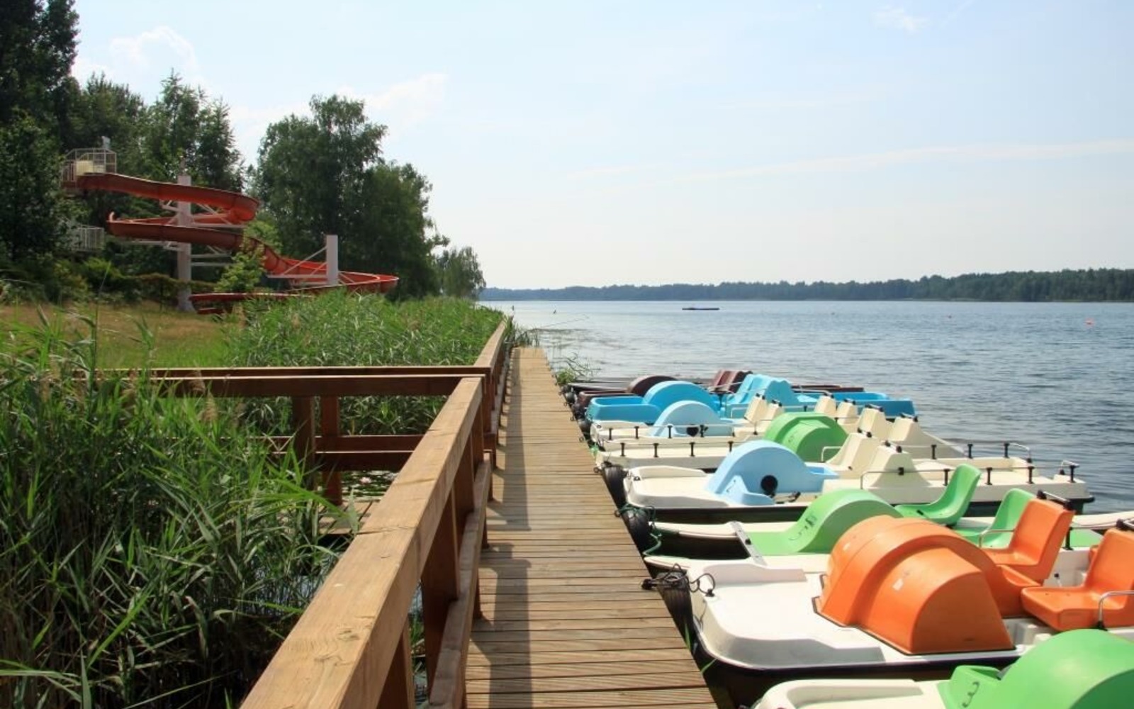 Lake Halbendorfer See is situated in the east of the Lusatian Lake District. There is a 350-metre-long textile bathing beach with sunbathing lawns on the north side of the lake, not far from the village of Halbendorf. Here you can find huge water slides, a playground, a minigolf facility, table tennis, a football and beach volleyball court, and a boat rental service. Paid parking, bathroom facilities and restaurants round off the range. There is a campsite right by the beach.