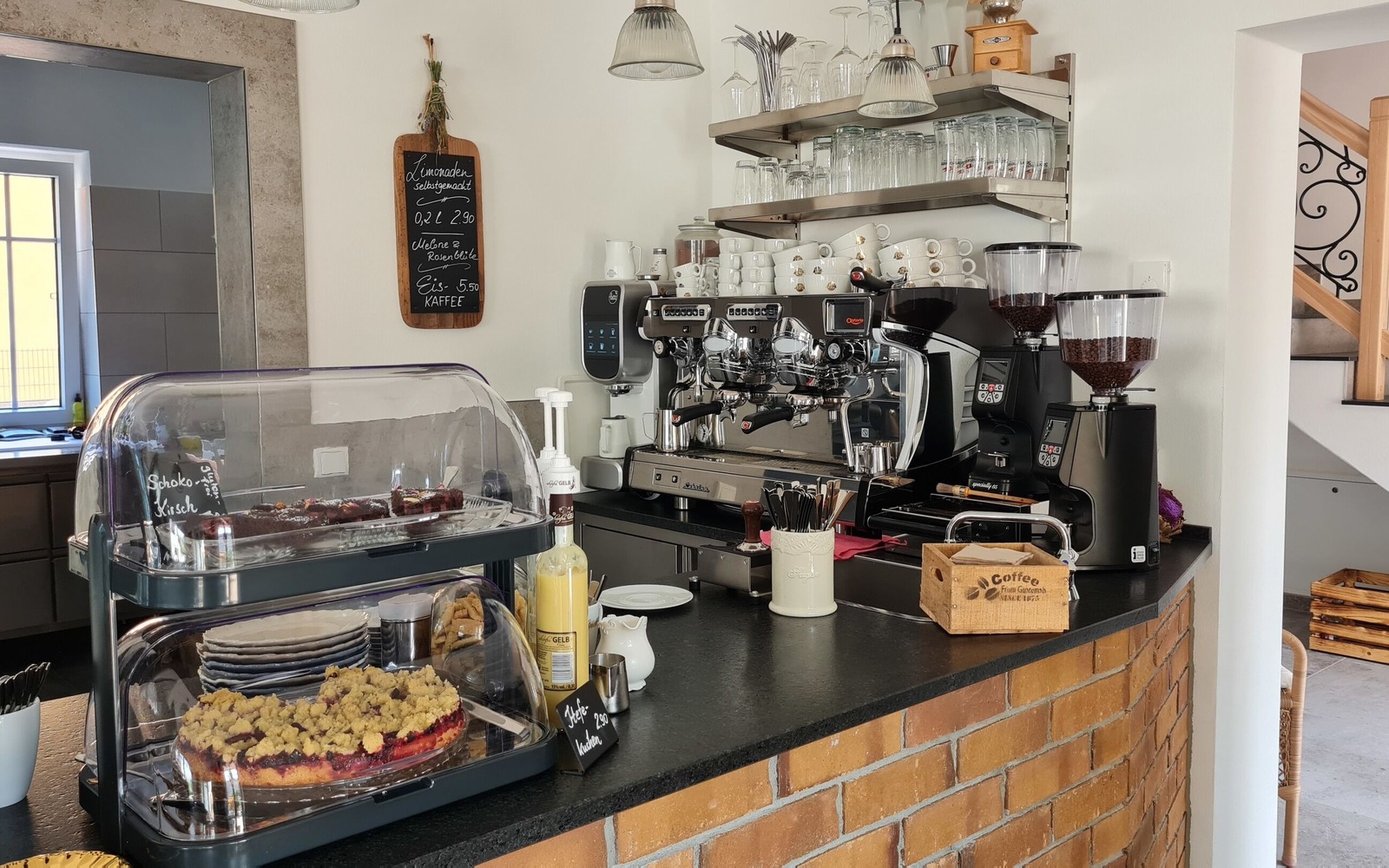 Das Hof-Café bietet selbstgebackene Kuchen und verschiedenste Kaffeespezialitäten sowie Tee oder selbsgemachte Limonaden an. Auch im kleinen Café-Lädchen können ausgewählte Kleinigkeiten erworben werden.