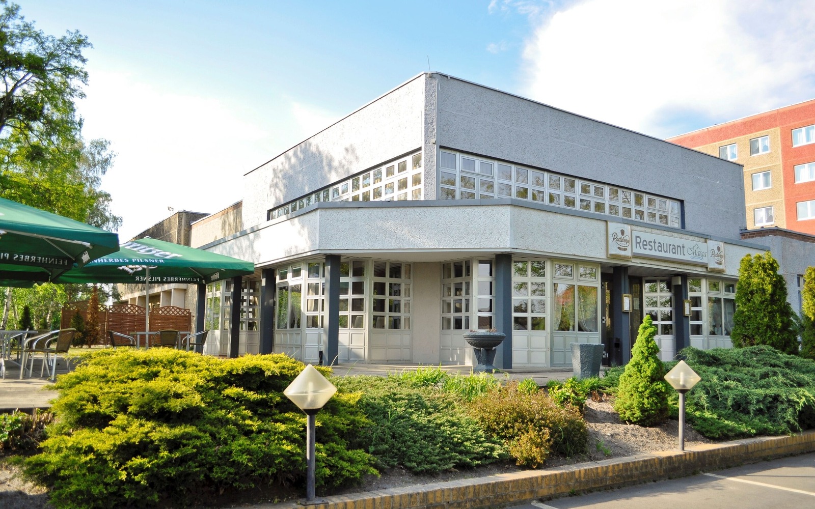 Angeboten wird eine traditionell deutsche und regionale Küche – wahlweise als Buffet vor Ort oder außer Haus zur Abholung. Die Speisekarte wird regelmäßig durch wechselnde Themenwochen ergänzt. Zahlreiche Bilder im Restaurant veranschaulichen die Geschichte der Gartenstadt Marga sowie der umliegenden Braunkohle-Region. In den Sommermonaten wird der gastronomische Service auch auf der Terrasse angeboten.