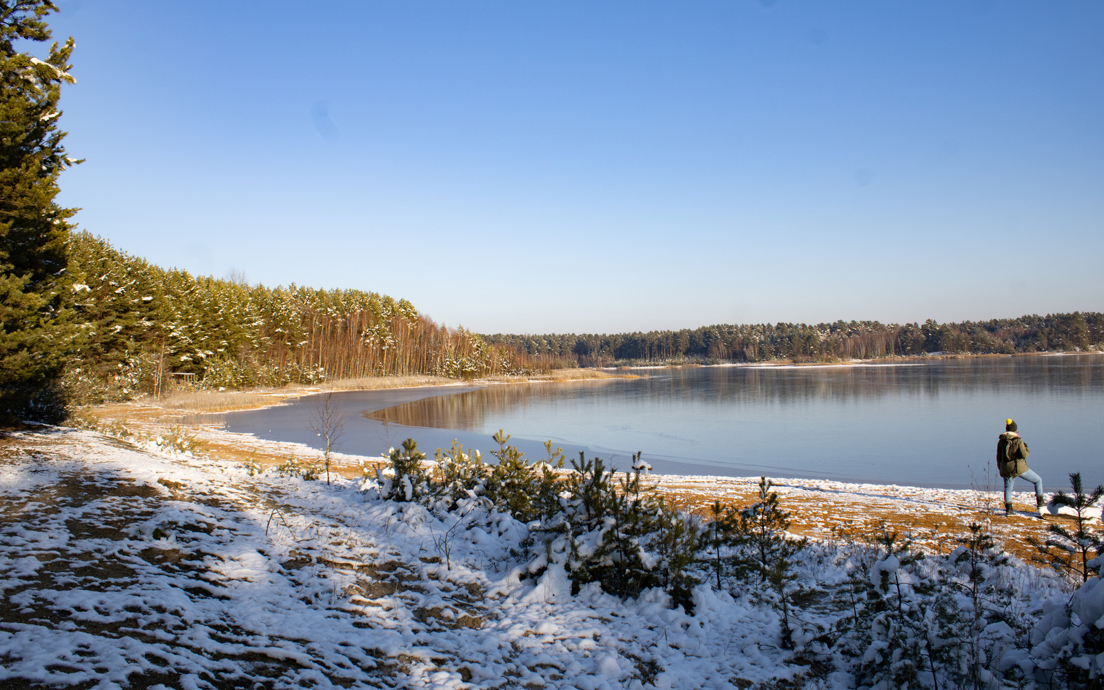 Direkt zu Beginn schlängelt sich der abenteuerliche kleine Waldweg an dem Großen Sandschacht vorbei. Dieser verzaubert mit seiner türkis-grünen Färbung. Folgt man der Ausschilderung weiterhin, wird der nächste Teich mit kleinem Rastplatz zum Verweilen erreicht. Mit neuer Energie kann die Tour schließlich fortgesetzt werden. Nach Verlassen des Waldweges folgt in einiger Entfernung der Blick auf den Petermannsteich. Auch eine Friesenpferdezucht gibt es hier auf der linken Seite zu sehen. Von nun an folgt man einer asphaltierten Straße wieder zurück zum Familienpark. Auf dem Rückweg folgt man dem Weg neben dem Anschlussgleis des Steinwerkes. Hier läuft man durch den Kiefernwald.