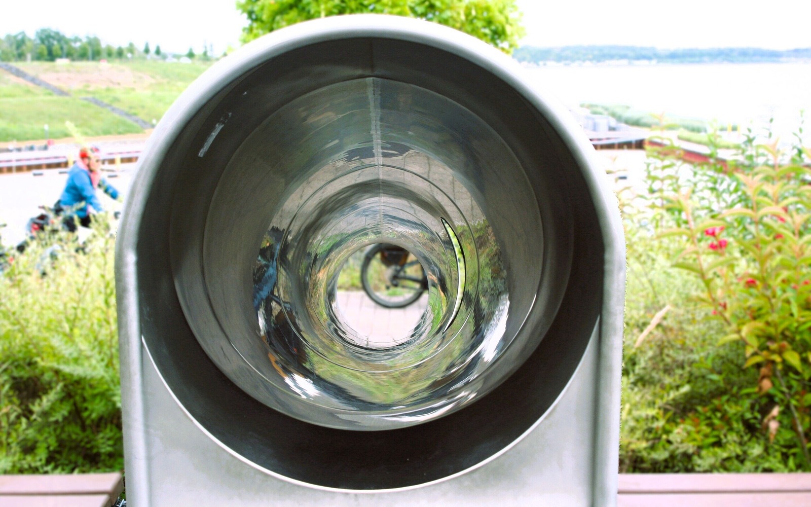 Rutsche mit Blick zur Seebrücke, Foto: Celine Klose, Lizenz: Tourismusverband Lausitzer Seenland e.V.