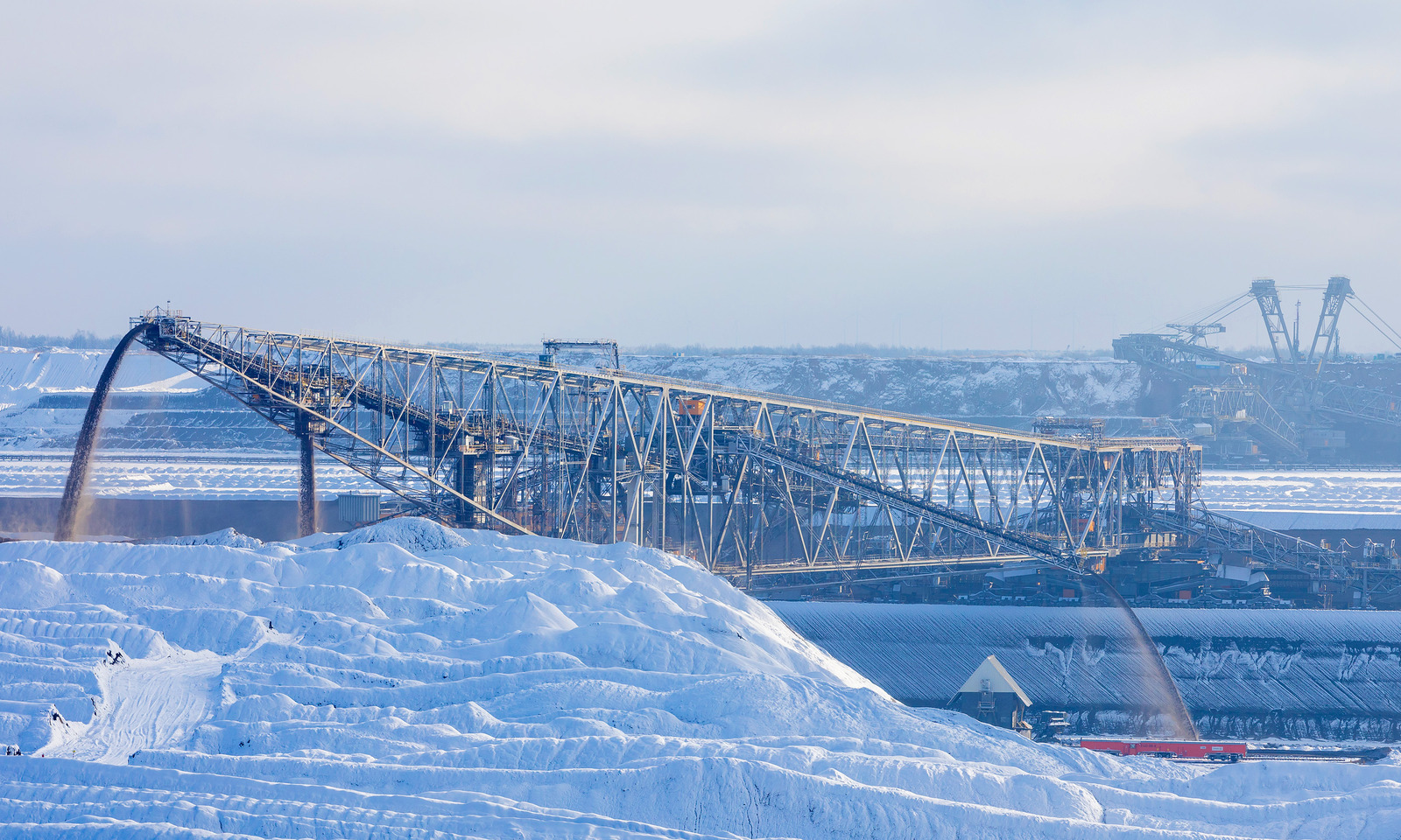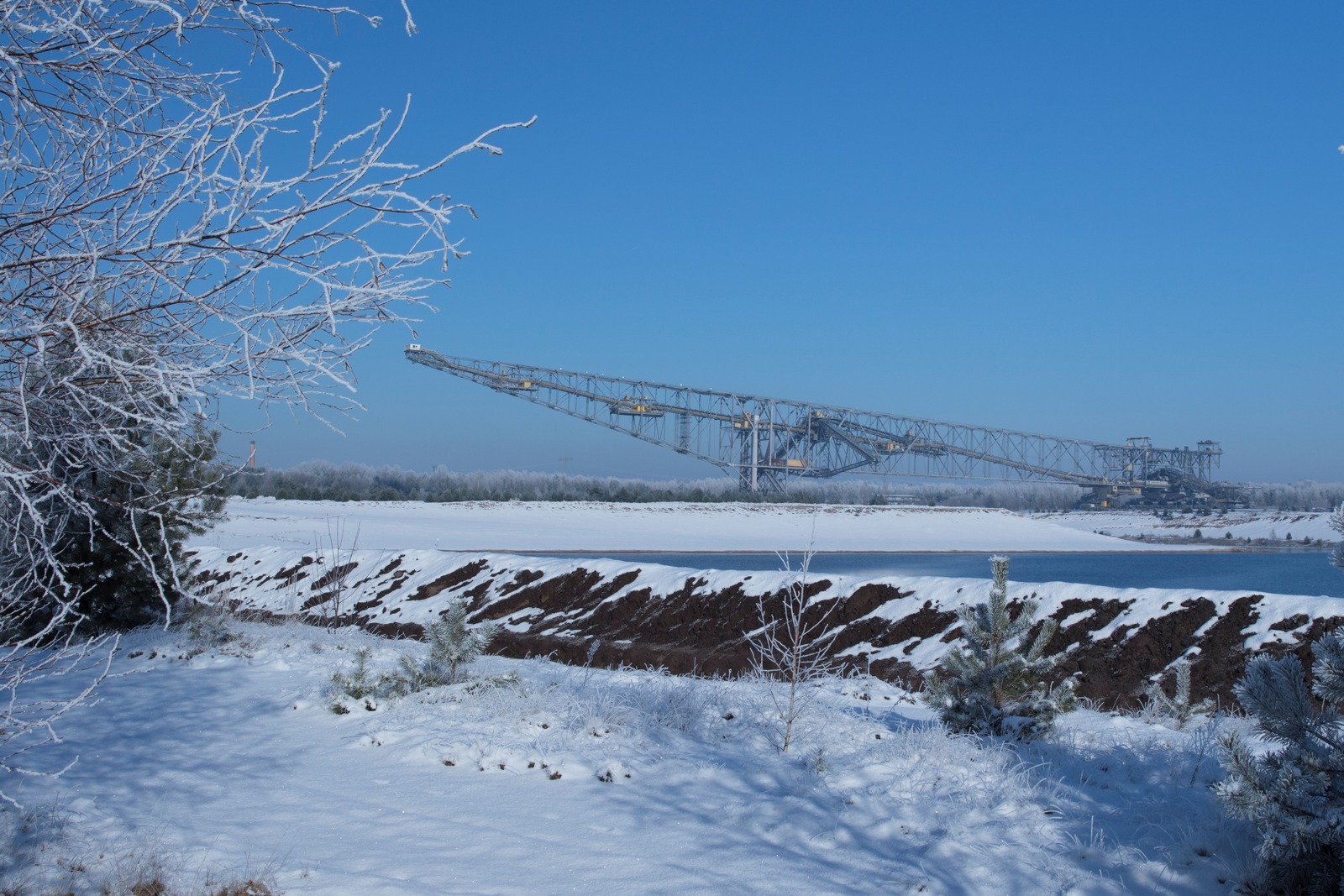 Förderbrücke F60 im winterlichen Tagebau, Foto: Andreas Franke