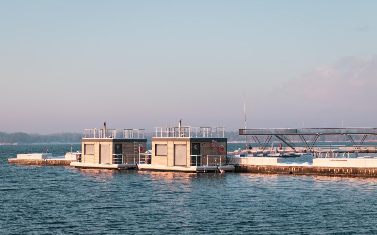 Saunaflöße am Senftenberger Stadthafen, Foto: Kathrin Winkler