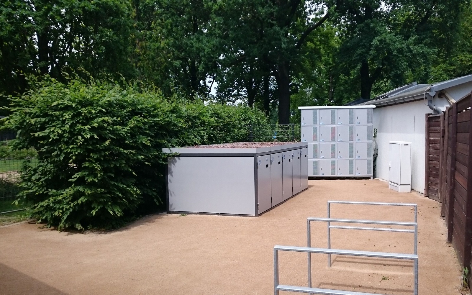 Gepäckschließfächer mit E-Bike-Ladestation am Ostdeutschen Rosengarten