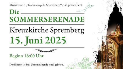 Der Musikverein "Trachtenkapelle Spremberg" e.V. lädt zu einem besonderen musikalischen Erlebnis ein: Die Sommerserenade in der Kreuzkirche Spremberg verspricht ein festliches Konzert voller Klangvielfalt, Emotion und sommerlicher Atmosphäre. Die einzigartige Akustik der Kreuzkirche bietet dabei den perfekten Rahmen für ein unvergessliches Hörerlebnis. Musikliebhaber jeden Alters sind herzlich willkommen, einen Abend in Gemeinschaft und musikalischer Verbundenheit zu genießen.