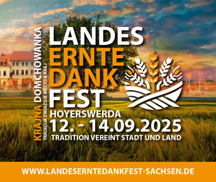 Das Landeserntedankfest in Hoyerswerda vereint Tradition, Genuss und Unterhaltung. Mehrere Bühnen in der Innenstadt bieten ein vielfältiges Kulturprogramm mit Musik, Tanz und Vorführungen. Die Grüne Meile präsentiert Landwirtschaft, moderne Technik, Tierhaltung, Umweltbildung und gärtnerische Vielfalt. Für kulinarische Entdeckungen sorgt ein großes Angebot regionaler Spezialitäten, das unter anderem von der Initiative "Die Lausitz schmeckt" geprägt wird. In der Altstadt zeigt der Wettbewerb um kunstvolle Erntekronen und -kränze ländliche Handwerkskunst. Traditionelle Vorführungen wie Sensendengeln, Sauerkrautherstellung und das Landfrauencafé ergänzen das Programm. Ein großer Festumzug setzt einen besonderen Höhepunkt. Außerdem sorgen in der Neustadt Rummel und Blaulichtmeile für Abwechslung, während kreative Aktionen und Workshops auf der Mitmach-Promenade sowie eine Modellbahnausstellung im Einsteinhaus das Fest abrunden.