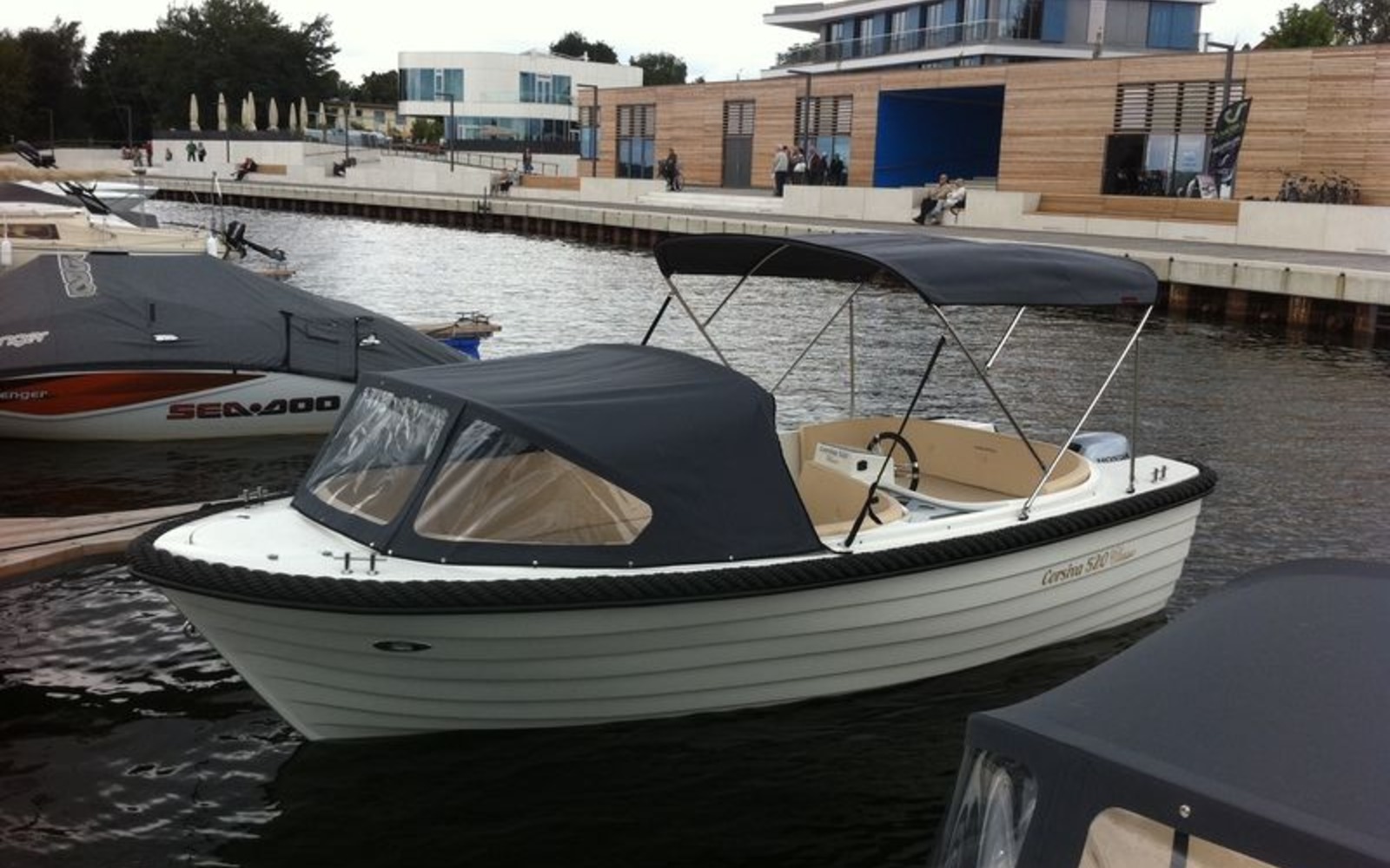 Das offene Motorboot bietet Platz für maximal 5 Personen. Das ausklappbare Dach schützt vor Sonne, Wind und Regen. Tisch und Sitzpolster sind an Bord. Die Motorboote mit 8 PS sind führerscheinfrei und ohne Vorkenntnis ab 16 Jahren steuerbar. Die Motorboote mit 15 PS zwar führerscheinfrei, aber aufgrund der anspruchsvollen Bedienung wird der Nachweis eines Bootsführerscheins oder nur für erfahrenere Boots-Bediener gewünscht.