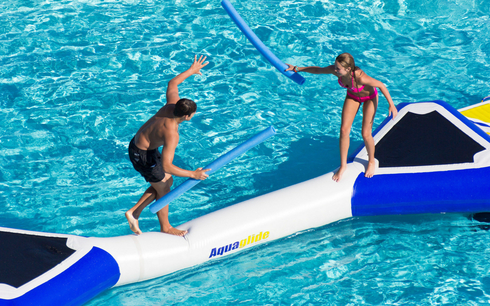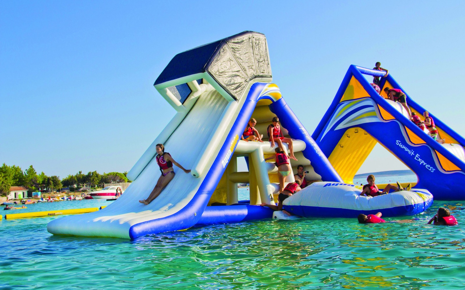 Aquapark: Direkt neben der Wasserski- und Wakeboard Anlage gibt es einen Aquapark für Groß und Klein. Garantierter Spaß auf fast 1000 m² Aktionsfläche. Neben 5 m hohen Rutschen, Kletterwänden und Wassertrampolinen gibt es auch einen Parcours für die Kleineren.