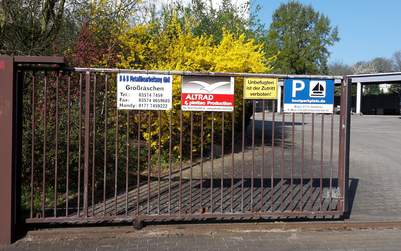 Im abgeschlossenen und gesichertem Betriebsgelände bietet Ihnen die Firma B & B Metallbearbeitung für das Sommer- und Winterlager befestigte Abstellplätze für Boote, Wohnwagen und Caravans an:
