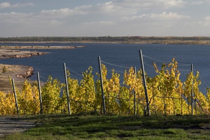 Großräschener See mit Weinberg und IBA-Terrassen im Herbst, Foto: Kathrin Winkler