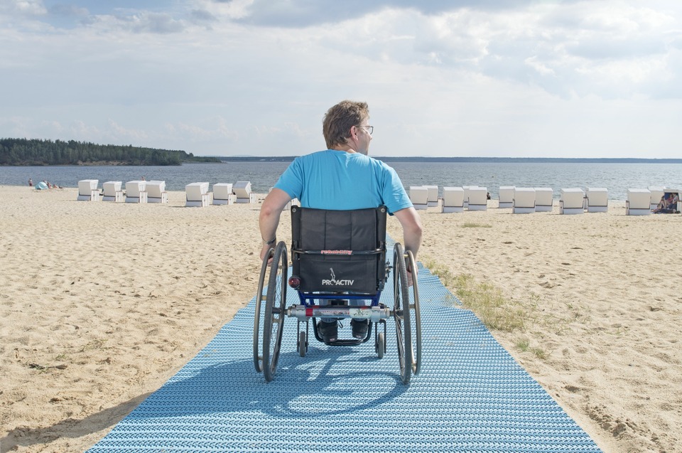 Mit Rollstuhl und Kinderwagen an den Badestrand