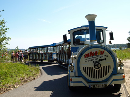 Seenland-Urlauber können ab Mai auf der neuen Erlebnistour „Vom Sandstrand zum Kohleflöz“ zu den Anfängen des Lausitzer Seenlandes aufbrechen. Die Zeitreise startet mit der Kleinbahn „Seeschlange“ am Senftenberger See, dem ältesten der künstlich geschaffenen Seen im Lausitzer Seenland. Wer hier auf den See mit Badestränden, Marina und künftigen Hafen schaut, kann sich kaum vorstellen am Rande eines ehemaligen Tagebaus zu stehen. Von dort schlängelt sich die Kleinbahn mitten durch die größte von Menschenhand geschaffene Wasserlandschaft Europas vorbei am Aussichtsturm „Rostiger Nagel“ und an schiffbaren Kanälen zurück in die Vergangenheit. Am Sedlitzer See steigen die Gäste in den Mannschaftstransportwagen um und fahren, wie einst die echten Bergmänner, in den aktiven Tagebau Welzow-Süd. Erfahrene Gästeführer begleiten die Besucher bis runter zu den gigantischen Kohlebaggern, wo sie auf Tuchfühlung mit den Großgeräten gehen. Zum Abschluss erwartet die Gäste Kaffee und hausgemachter Kuchen im Café Concord auf dem Flugplatz Welzow. Von hier geht es mit der Kleinbahn vorbei an den schwimmenden Häusern auf dem Geierswalder See zurück zum Senftenberger See.