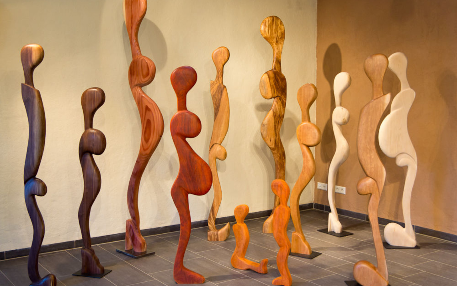 The ancient gnarled trunks from Prince Pueckler’s Park and primeval forest are the medium from which Thomas Schwarz creates his unique works of art. In addition, he uses exclusive woods to make elegant columns and relief works. Whether the art is figurative and realistic of abstract – the soul of the tree that gave the wood is at the heart of it. An unusual wood collection from several hundred varieties of tree and many quirky exhibits on the theme of wood make a visit to his studio a special experience.