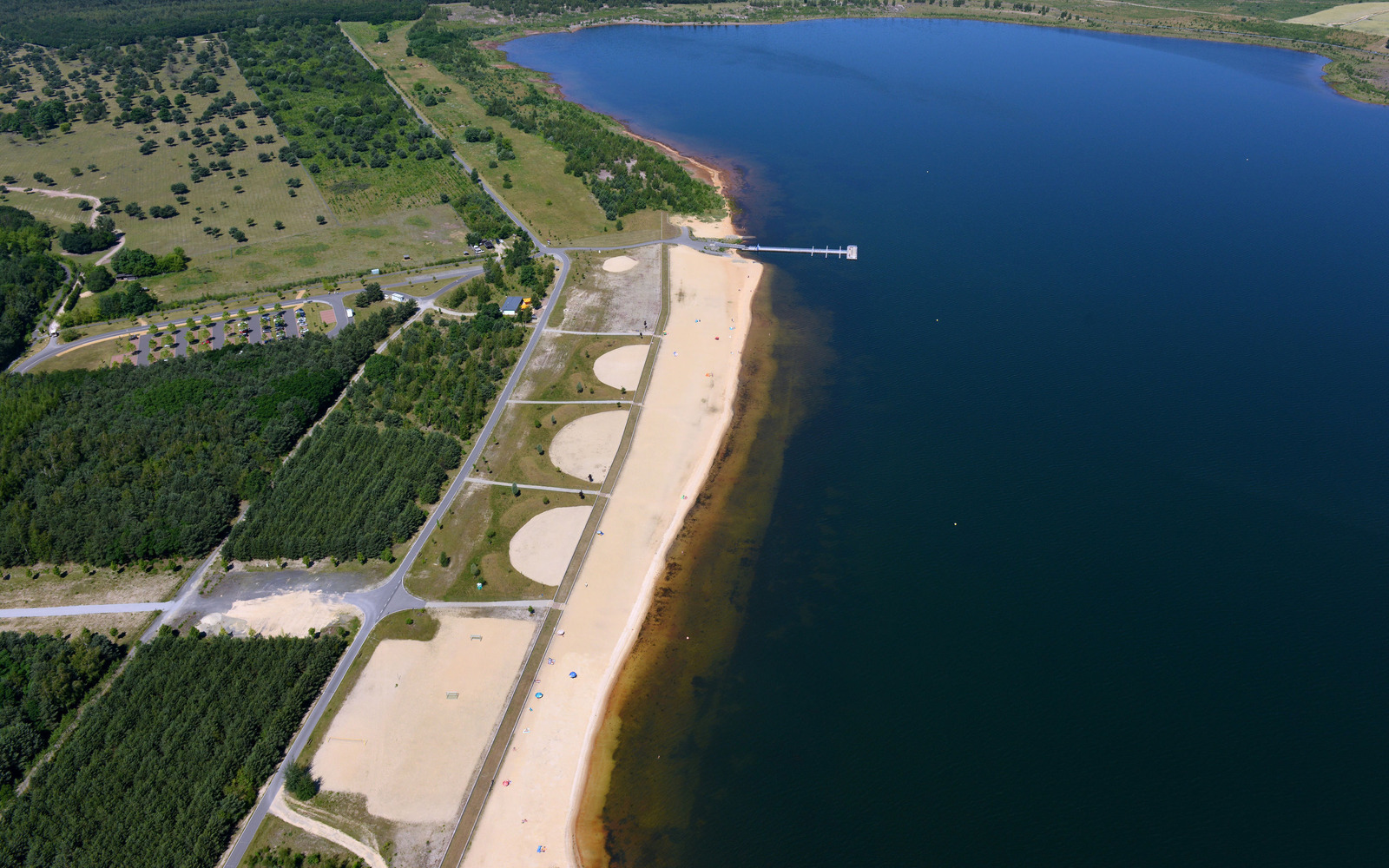 Running alongside the bathing area is an asphalt 21-kilometre-long lake circuit with a direct connection to the Spree Cycle Path, the Lakeland Route and the Sea Eagle Cycle Path. Near the beach there is a 130-hectare safari game reserve; guided tours are possible by prior arrangement.