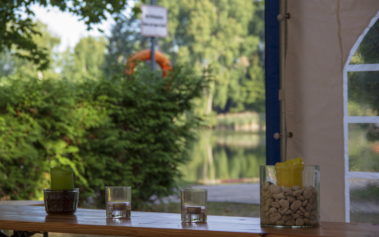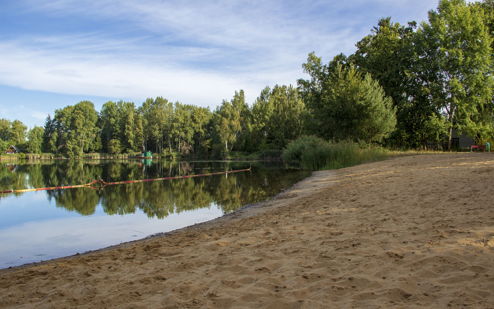 The well-kept natural bathing area has very good infrastructure, including a spacious sunbathing lawn and a beach volleyball field, a table-tennis table, eateries and toilets. The shore is gently sloping and child-friendly with a separate non-swimmer area. There is a free-of-charge car park.